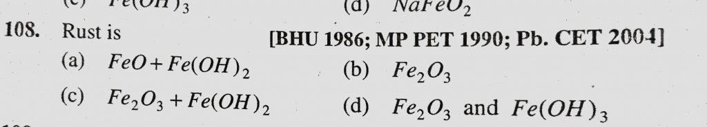 Rust is (a) FeO + Fe(OH)2 (b) Fe2O3 (c) Fe2O3 + Fe(OH)2 (d) Fe2O3 and Fe(OH)3 Rust is (a) FeO + Fe(OH)2 (b) Fe2O3 (c) Fe2O3 + Fe(OH)2 (d) Fe2O3 and Fe(OH)3 December 1, 2020 Category: Uncategorised (JEE Advanced Physics by BM Sharma + GMP Solutions) , Facebook Messenger WhatsApp Share this:TwitterFacebook Related