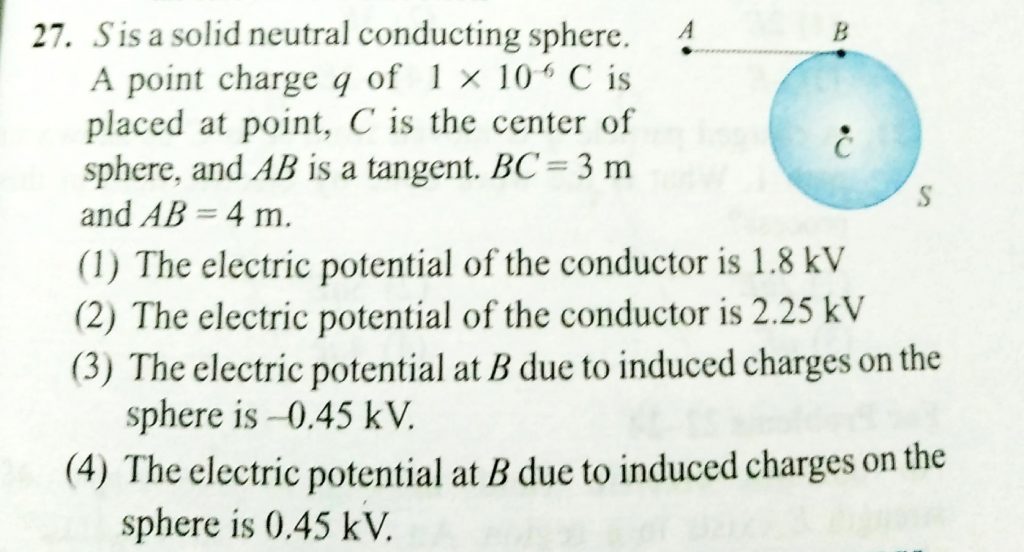 S is a solid neutral conducting sphere . A point charge q of 1 x 10^-6 C is placed at point , C is the center of sphere , and AB is a tangent . BC = 3 m and AB = 4 m. and AB is a tangent . BC = 3 m and AB = 4 m. C is the center of sphere S is a solid neutral conducting sphere . A point charge q of 1 x 10^-6 C is placed at point November 6, 2020 Category: Uncategorised (JEE Advanced Physics by BM Sharma + GMP Solutions) , Facebook Messenger WhatsApp Share this:TwitterFacebook Related