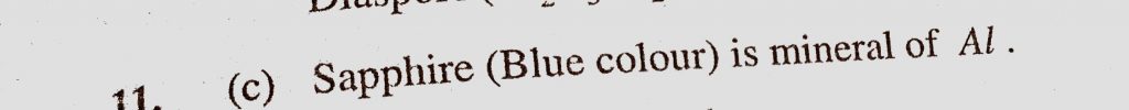 Sapphire is mineral of (a) Cu (b) Zn (c) Al (d) Mg Sapphire is mineral of (a) Cu (b) Zn (c) Al (d) Mg November 11, 2020 Category: Uncategorised (JEE Advanced Physics by BM Sharma + GMP Solutions) , Facebook Messenger WhatsApp Share this:TwitterFacebook Related