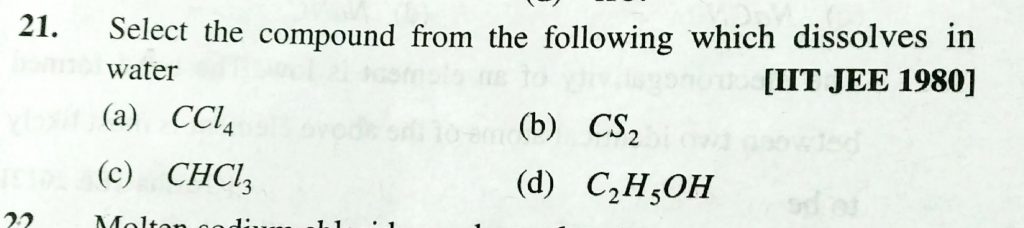 Select the compound from the following which dissolve in water (a) CCL4 (b) CS2 (c) CHCL3 (d) C2H5OH Select the compound from the following which dissolve in water (a) CCL4 (b) CS2 (c) CHCL3 (d) C2H5OH December 9, 2020 Category: Uncategorised (JEE Advanced Physics by BM Sharma + GMP Solutions) , Facebook Messenger WhatsApp Share this:TwitterFacebook Related