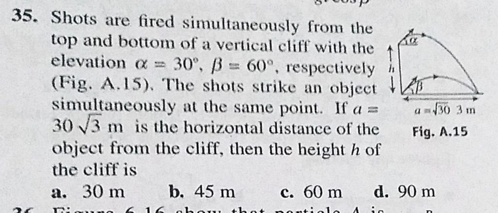 Shots are fired simultaneously form the top and bottom of a vertical cliff with the elevation alpha = 30 , beta = 60, respectively. The shots strike an object simultaneously at the same point. If a = 30 root 3 m beta = 60 respectively. The shots strike an object simultaneously at the same point. If a = 30 root 3 m Shots are fired simultaneously form the top and bottom of a vertical cliff with the elevation alpha = 30 September 24, 2020 Category: Uncategorised (JEE Advanced Physics by BM Sharma + GMP Solutions) , Facebook Messenger WhatsApp Share this:TwitterFacebook Related