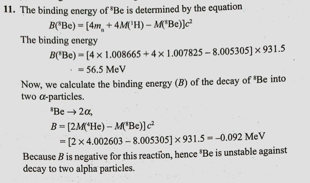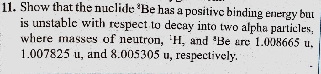 Show that the nuclide 8Be has a positive binding energy but is unstable with respect to decay into two alpha particles, where masses of neutron, 1H, and 8B are 1.008665 u, 1.007825u, 1.007825u 1H and 8B are 1.008665 u Show that the nuclide 8Be has a positive binding energy but is unstable with respect to decay into two alpha particles where masses of neutron October 17, 2020 Category: Uncategorised (JEE Advanced Physics by BM Sharma + GMP Solutions) , Facebook Messenger WhatsApp Share this:TwitterFacebook Related
