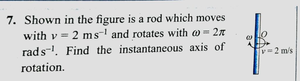 Shown in the figure is a rod which moves with v = 2 m/s and rotates with omega = 2 pie rad/s. Find the instantaneous axis of rotation. Shown in the figure is a rod which moves with v = 2 m/s and rotates with omega = 2 pie rad/s. Find the instantaneous axis of rotation. September 25, 2020 Category: Uncategorised (JEE Advanced Physics by BM Sharma + GMP Solutions) , Facebook Messenger WhatsApp Share this:TwitterFacebook Related