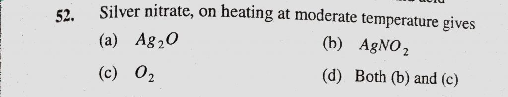 Silver nitrate, on heating at moderate temperature gives (a) Ag2O (b) AgNO2 (c) O2 (d) Both (b) and (c) on heating at moderate temperature gives (a) Ag2O (b) AgNO2 (c) O2 (d) Both (b) and (c) Silver nitrate December 2, 2020 Category: Uncategorised (JEE Advanced Physics by BM Sharma + GMP Solutions) , Facebook Messenger WhatsApp Share this:TwitterFacebook Related