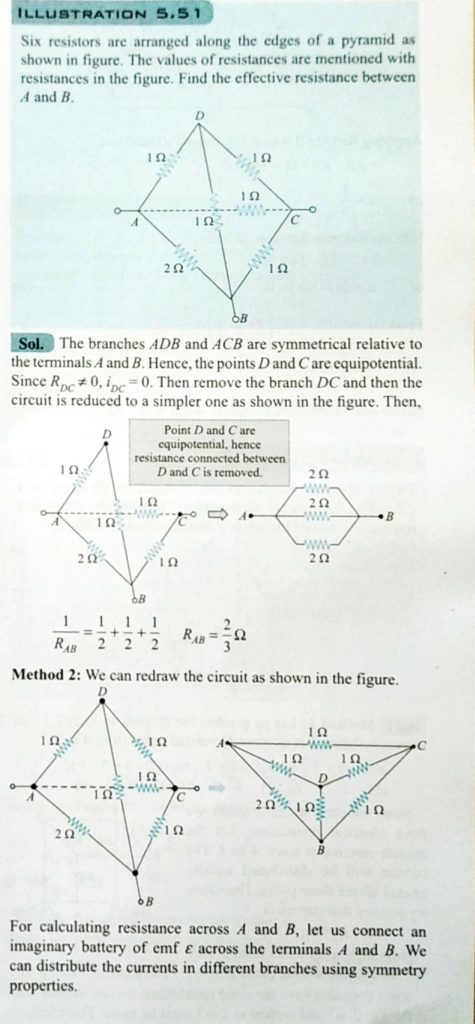 Six resistor are arranged along the edges of a pyramid as shown in Fig. 5.43. The values of resistances are mentioned with resistances in the figure. Find the effective between A and B. Six resistor are arranged along the edges of a pyramid as shown in Fig. 5.43. The values of resistances are mentioned with resistances in the figure. Find the effective between A and B. September 2, 2020 Category: Uncategorised (JEE Advanced Physics by BM Sharma + GMP Solutions) , Facebook Messenger WhatsApp Share this:TwitterFacebook Related