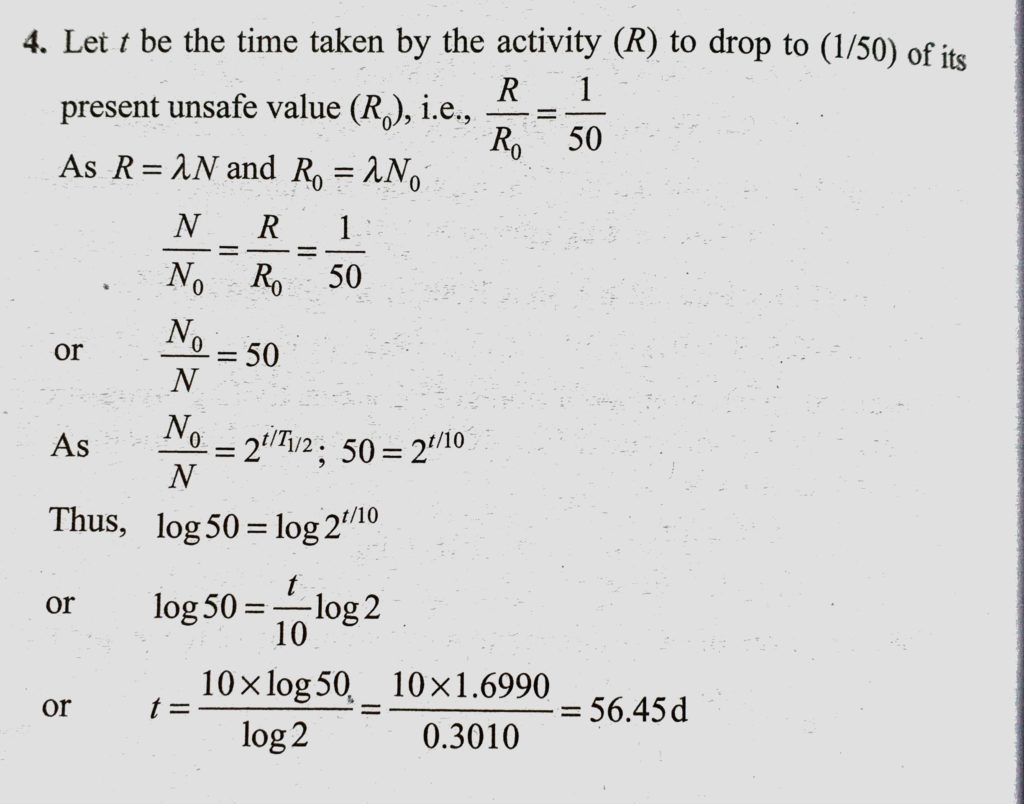 Small amount of a radioactive substance (half-life = 10 days) is spread inside a room and consequently the level of radiation becomes 50 times the level for normal occupancy Small amount of a radioactive substance (half-life = 10 days) is spread inside a room and consequently the level of radiation becomes 50 times the level for normal occupancy October 17, 2020 Category: Uncategorised (JEE Advanced Physics by BM Sharma + GMP Solutions) , Facebook Messenger WhatsApp Share this:TwitterFacebook Related