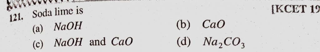 Soda lime is (a) NaOH (b) CaO (c) NaOH and CaO (d) Na2CO3 Soda lime is (a) NaOH (b) CaO (c) NaOH and CaO (d) Na2CO3 November 15, 2020 Category: Uncategorised (JEE Advanced Physics by BM Sharma + GMP Solutions) , Facebook Messenger WhatsApp Share this:TwitterFacebook Related