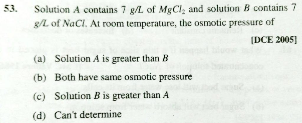 Solution A contains 7 g/L of MgCL2 and sollution B contains 7 g/L of NaCL. At room temperature , the osmotic pressure of Solution A contains 7 g/L of MgCL2 and sollution B contains 7 g/L of NaCL. At room temperature the osmotic pressure of December 13, 2020 Category: Uncategorised (JEE Advanced Physics by BM Sharma + GMP Solutions) , Facebook Messenger WhatsApp Share this:TwitterFacebook Related