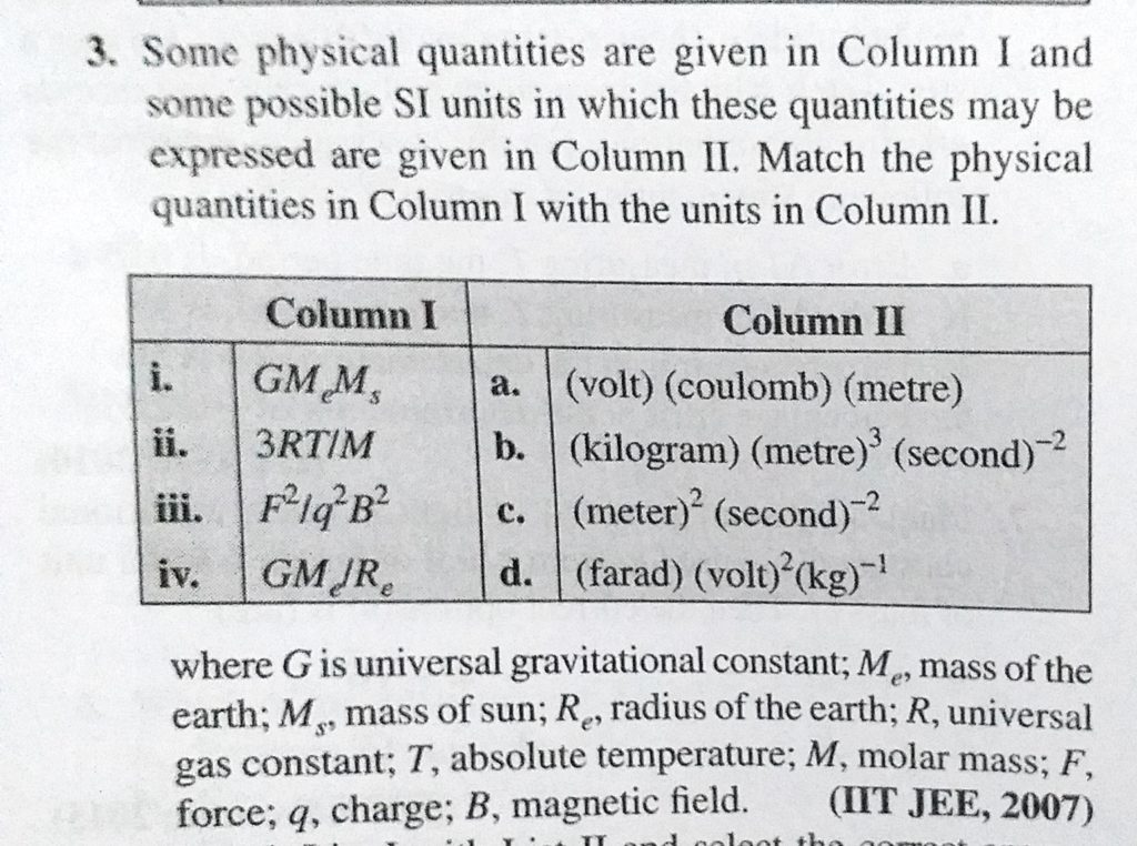 Some physical quantities are given in Column 1 and some possible SI units in which these quantities may be expressed are given in column 2. Match the physical quantities in Column 1 with the units in Some physical quantities are given in Column 1 and some possible SI units in which these quantities may be expressed are given in column 2. Match the physical quantities in Column 1 with the units in September 16, 2020 Category: Uncategorised (JEE Advanced Physics by BM Sharma + GMP Solutions) , Facebook Messenger WhatsApp Share this:TwitterFacebook Related