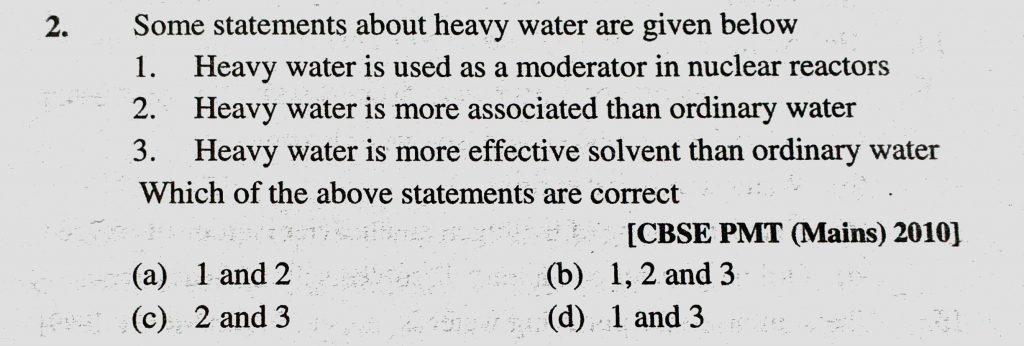 Some statements about heavy water are given below 1. Heavy water is used as a moderator in nuclear reactors 2. Heavy water is more associated than ordinary water Some statements about heavy water are given below 1. Heavy water is used as a moderator in nuclear reactors 2. Heavy water is more associated than ordinary water November 13, 2020 Category: Uncategorised (JEE Advanced Physics by BM Sharma + GMP Solutions) , Facebook Messenger WhatsApp Share this:TwitterFacebook Related