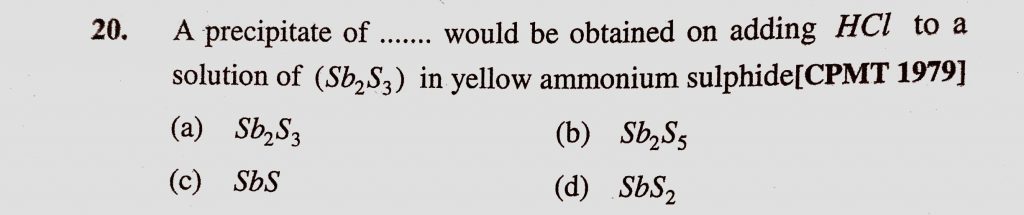 Sometimes yellow turbidity appears on passing H2S gas even in the absence of the second group radicals. This happens because Sometimes yellow turbidity appears on passing H2S gas even in the absence of the second group radicals. This happens because December 6, 2020 Category: Uncategorised (JEE Advanced Physics by BM Sharma + GMP Solutions) , Facebook Messenger WhatsApp Share this:TwitterFacebook Related