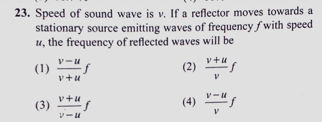 Speed of sound wave is v. If a reflector moves towards a stationary source emitting waves of frequency f with speed u, the frequency of reflected waves will be Speed of sound wave is v. If a reflector moves towards a stationary source emitting waves of frequency f with speed u the frequency of reflected waves will be November 7, 2020 Category: Uncategorised (JEE Advanced Physics by BM Sharma + GMP Solutions) , Facebook Messenger WhatsApp Share this:TwitterFacebook Related