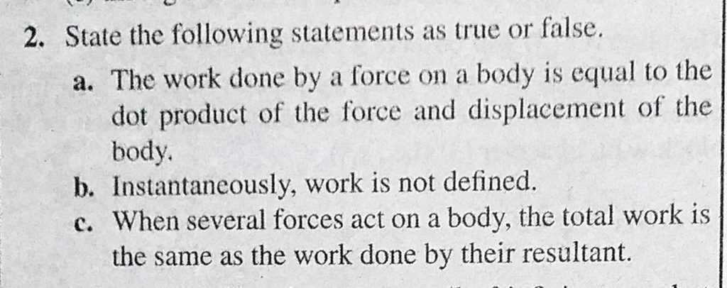 State the following statements as true or false. a. The work done by a force on a boy is equal to the dot product of the force and displacement of the body. b. Instantaneously, work is not defined. State the following statements as true or false. a. The work done by a force on a boy is equal to the dot product of the force and displacement of the body. b. Instantaneously work is not defined. October 2, 2020 Category: Uncategorised (JEE Advanced Physics by BM Sharma + GMP Solutions) , Facebook Messenger WhatsApp Share this:TwitterFacebook Related