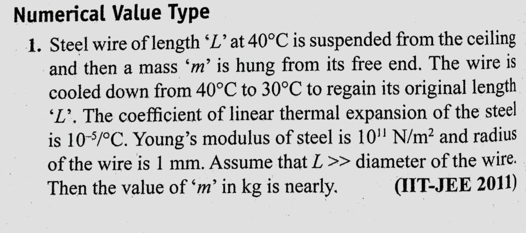Steel wire of length L at 40 C is suspended from the ceiling and then a mass m is hung from its free end. The wire is cooled down from 40 C to 30 C to regain its original length L. Steel wire of length L at 40 C is suspended from the ceiling and then a mass m is hung from its free end. The wire is cooled down from 40 C to 30 C to regain its original length L. October 24, 2020 Category: Uncategorised (JEE Advanced Physics by BM Sharma + GMP Solutions) , Facebook Messenger WhatsApp Share this:TwitterFacebook Related