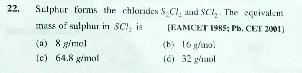 Sulphur forms the chlorides S2cl2 and Scl2. The equivalent mass of sulphur in Scl2 is Sulphur forms the chlorides S2cl2 and Scl2. The equivalent mass of sulphur in Scl2 is November 22, 2020 Category: Uncategorised (JEE Advanced Physics by BM Sharma + GMP Solutions) , Facebook Messenger WhatsApp Share this:TwitterFacebook Related