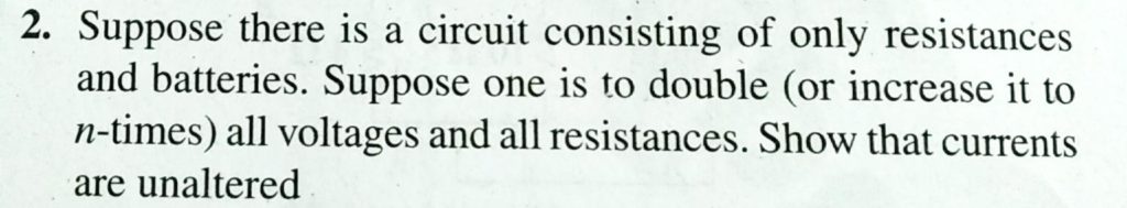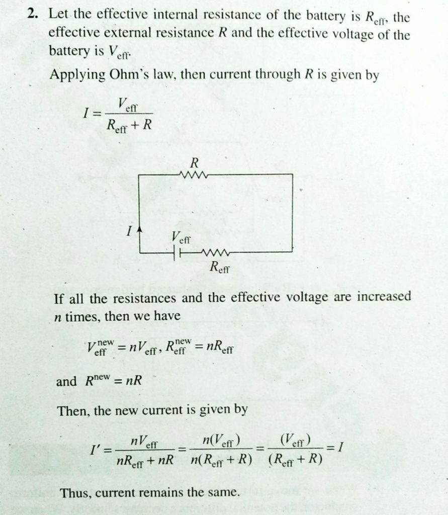 Suppose there is a circuit consting of only resistances and batteries. suppose one is to double ( or increase it to n -times ) all voltages and all resistances. Show that currents are unaltered Suppose there is a circuit consting of only resistances and batteries. suppose one is to double ( or increase it to n -times ) all voltages and all resistances. Show that currents are unaltered September 19, 2020 Category: Uncategorised (JEE Advanced Physics by BM Sharma + GMP Solutions) , Facebook Messenger WhatsApp Share this:TwitterFacebook Related