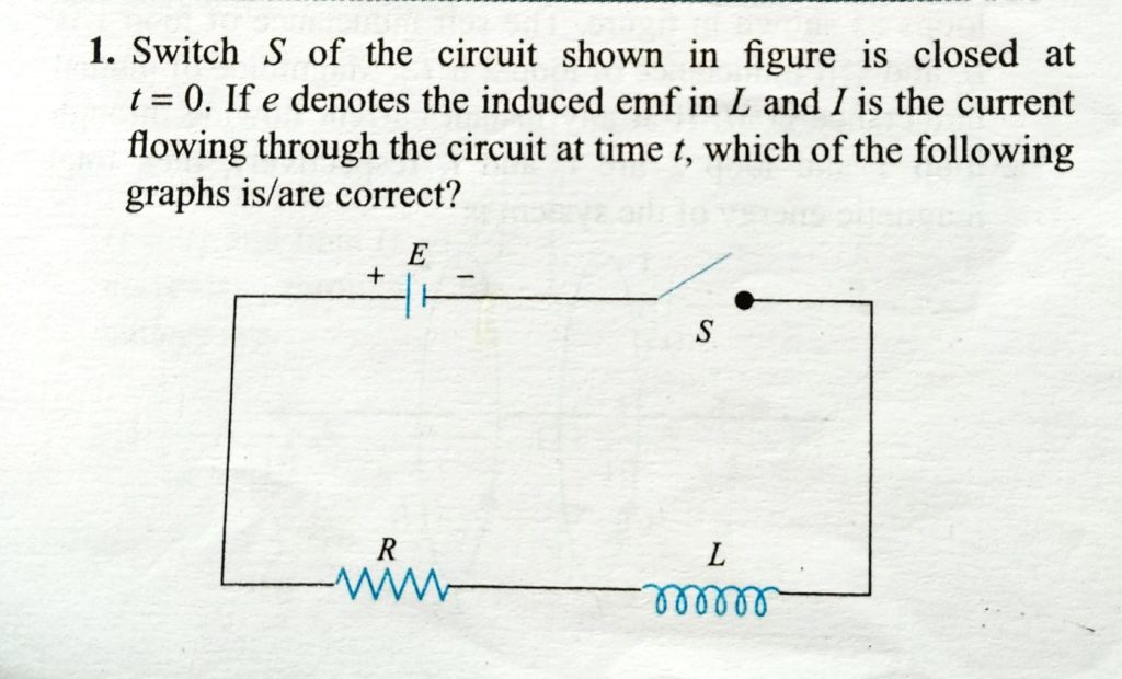 Switctch S of the circuit shown in figure is closed at t = 0 . If e denotes the induced emf in L and I is current flowing through the circuit at time t, which of the following graphs is/are correct ? Switctch S of the circuit shown in figure is closed at t = 0 . If e denotes the induced emf in L and I is current flowing through the circuit at time t which of the following graphs is/are correct ? October 24, 2020 Category: Uncategorised (JEE Advanced Physics by BM Sharma + GMP Solutions) , Facebook Messenger WhatsApp Share this:TwitterFacebook Related