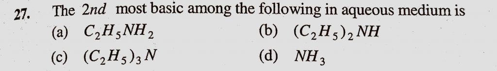 The 2nd most basic among the following in aqueous medium is (a) C2H5NH2 (b) (C2H5)2NH The 2nd most basic among the following in aqueous medium is (a) C2H5NH2 (b) (C2H5)2NH December 12, 2020 Category: Uncategorised (JEE Advanced Physics by BM Sharma + GMP Solutions) , Facebook Messenger WhatsApp Share this:TwitterFacebook Related