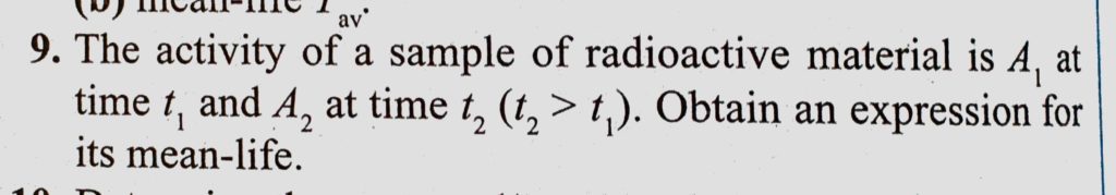 The activity of a sample of radioactive material is A1 at time t1 and A2 at time t2 (t2 > t1). Obtain an expression for its mean-life. The activity of a sample of radioactive material is A1 at time t1 and A2 at time t2 (t2 > t1). Obtain an expression for its mean-life. October 17, 2020 Category: Uncategorised (JEE Advanced Physics by BM Sharma + GMP Solutions) , Facebook Messenger WhatsApp Share this:TwitterFacebook Related