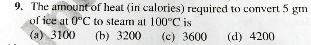The amount of heat ( in calories ) required to convert 5 gm of ice at 0 degree C to steam at 100 degree C is The amount of heat ( in calories ) required to convert 5 gm of ice at 0 degree C to steam at 100 degree C is October 3, 2020 Category: Uncategorised (JEE Advanced Physics by BM Sharma + GMP Solutions) , Facebook Messenger WhatsApp Share this:TwitterFacebook Related