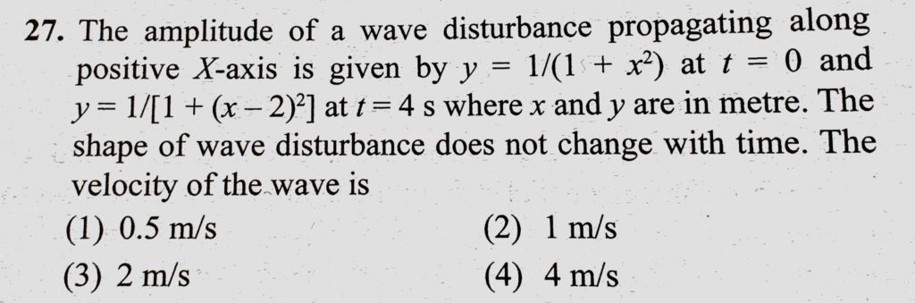 The amplitude of a wave disturbance propagating along positive X-axis is given by y = 1 / (1 + x^2) at t = 0 and y = 1 / (1 + (x – 2)^2) at t = 4 s where x and y are in metre. The The amplitude of a wave disturbance propagating along positive X-axis is given by y = 1 / (1 + x^2) at t = 0 and y = 1 / (1 + (x - 2)^2) at t = 4 s where x and y are in metre. The November 1, 2020 Category: Uncategorised (JEE Advanced Physics by BM Sharma + GMP Solutions) , Facebook Messenger WhatsApp Share this:TwitterFacebook Related