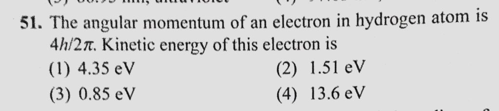 The angular momentum of an electron in hydrogen atom is 4h/2 pie. Kinetic energy of this electron is The angular momentum of an electron in hydrogen atom is 4h/2 pie. Kinetic energy of this electron is October 16, 2020 Category: Uncategorised (JEE Advanced Physics by BM Sharma + GMP Solutions) , Facebook Messenger WhatsApp Share this:TwitterFacebook Related