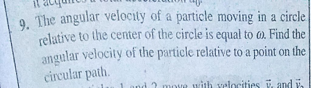 The angular velocity of a particle moving in a circle relative to the center of the circle is equal to omega. Find the angular velocity of the particle relative to a point on the circular path. The angular velocity of a particle moving in a circle relative to the center of the circle is equal to omega. Find the angular velocity of the particle relative to a point on the circular path. September 21, 2020 Category: Uncategorised (JEE Advanced Physics by BM Sharma + GMP Solutions) , Facebook Messenger WhatsApp Share this:TwitterFacebook Related