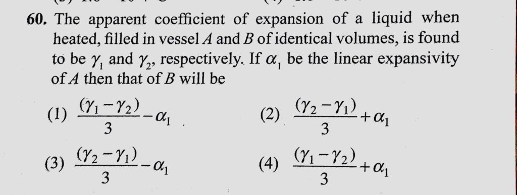 The apparent coefficient of expansion of a liquid when heated, filled in vessel A and B of identical volumes, is found to be lemda 1 and lemda 2, respectively. If alpha 1 be the linear filled in vessel A and B of identical volumes is found to be lemda 1 and lemda 2 respectively. If alpha 1 be the linear The apparent coefficient of expansion of a liquid when heated October 24, 2020 Category: Uncategorised (JEE Advanced Physics by BM Sharma + GMP Solutions) , Facebook Messenger WhatsApp Share this:TwitterFacebook Related