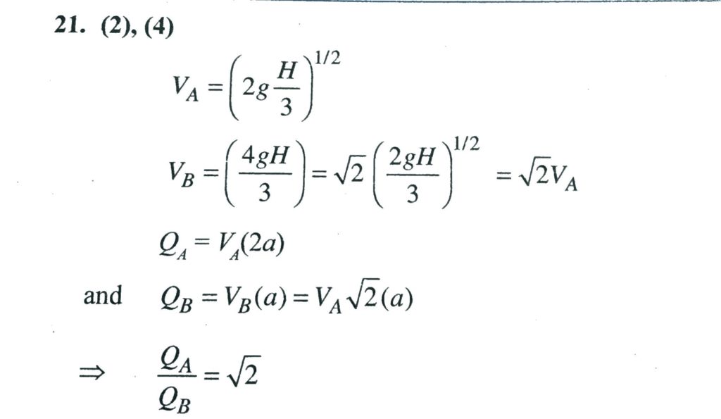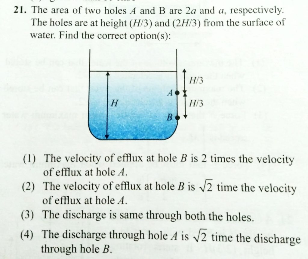 The area of two holes A and B are 2a and a, respectively . The holes are at height ( H/3 ) and ( 2 H/3 ) from the surface of water. Find the correct options: respectively . The holes are at height ( H/3 ) and ( 2 H/3 ) from the surface of water. Find the correct options: The area of two holes A and B are 2a and a October 8, 2020 Category: Uncategorised (JEE Advanced Physics by BM Sharma + GMP Solutions) , Facebook Messenger WhatsApp Share this:TwitterFacebook Related