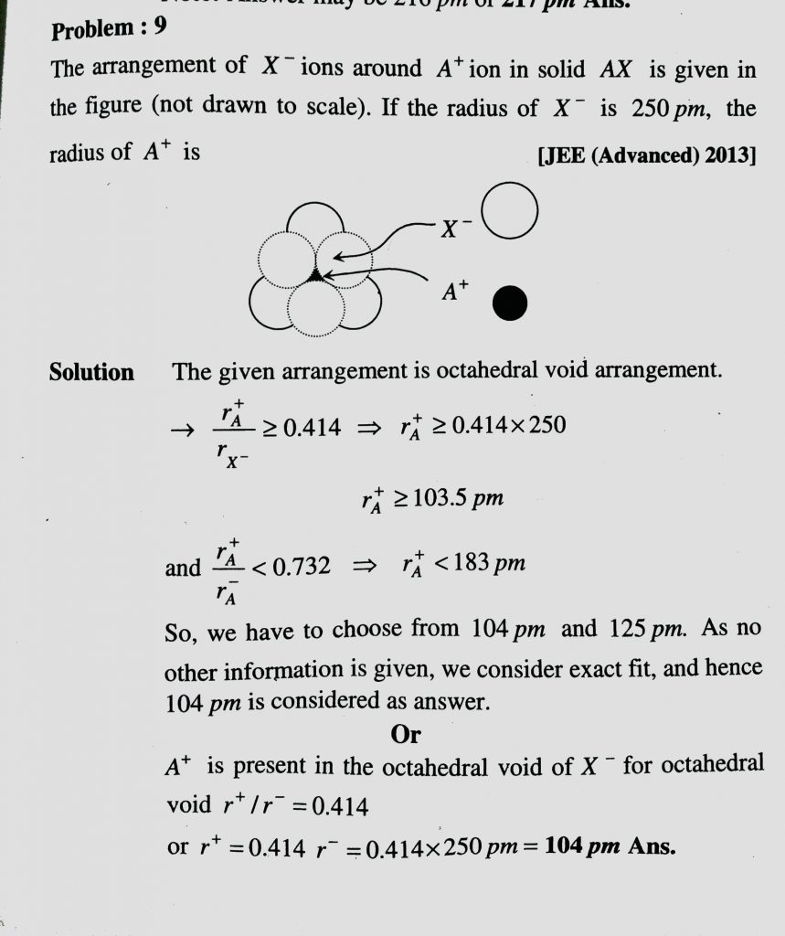 THe arrangement of X^- ions around A^+ ion in solid AX is given in the figure ( not drawn to scale ) . If the radius of X^- is 250 pm, the radius of A^+ is THe arrangement of X^- ions around A^+ ion in solid AX is given in the figure ( not drawn to scale ) . If the radius of X^- is 250 pm the radius of A^+ is February 10, 2021 Category: Uncategorised (JEE Advanced Physics by BM Sharma + GMP Solutions) , Facebook Messenger WhatsApp Share this:TwitterFacebook Related