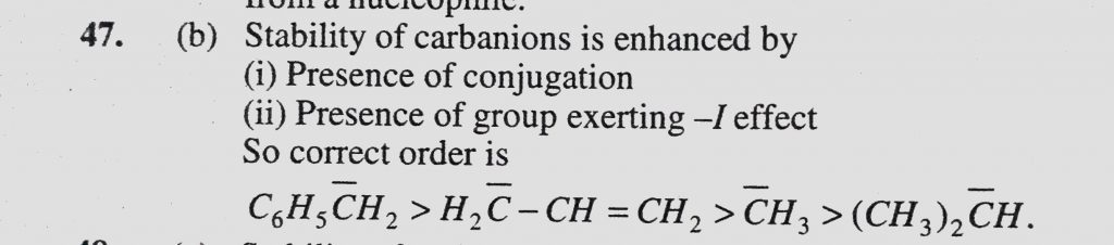 The ascending order of stability of the carbanion CH3(P), C6H5CH2(Q), (CH3)2CH (R) and H2C-CH=CH2(S) is (CH3)2CH (R) and H2C-CH=CH2(S) is C6H5CH2(Q) The ascending order of stability of the carbanion CH3(P) December 9, 2020 Category: Uncategorised (JEE Advanced Physics by BM Sharma + GMP Solutions) , Facebook Messenger WhatsApp Share this:TwitterFacebook Related