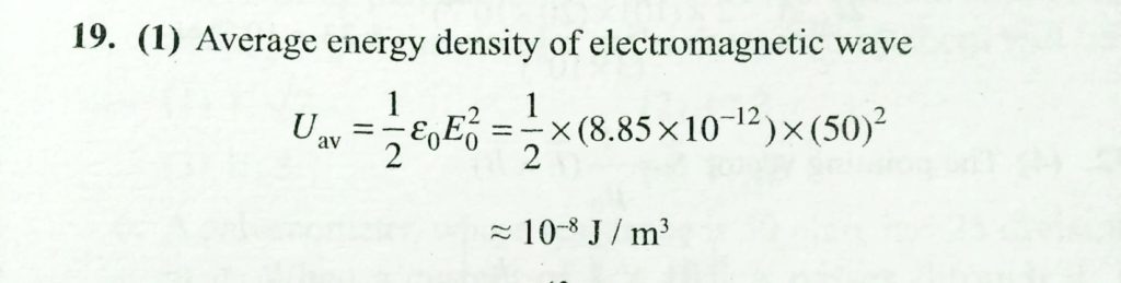 The average energy – density of electromagnetic wave given by E = ( 50 N/C ) sin ( omega t -Kx ) will be nearly The average energy - density of electromagnetic wave given by E = ( 50 N/C ) sin ( omega t -Kx ) will be nearly October 29, 2020 Category: Uncategorised (JEE Advanced Physics by BM Sharma + GMP Solutions) , Facebook Messenger WhatsApp Share this:TwitterFacebook Related