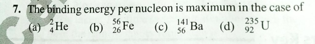 The binding energy per nucleon is maximum in the case of The binding energy per nucleon is maximum in the case of September 14, 2020 Category: Uncategorised (JEE Advanced Physics by BM Sharma + GMP Solutions) , Facebook Messenger WhatsApp Share this:TwitterFacebook Related