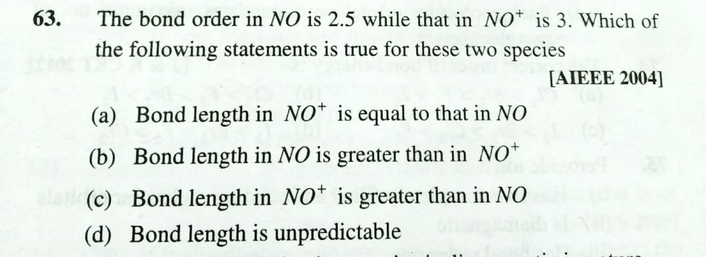 The bond order in NO is 2.5 while that in NO^+ is 3. Which of the follwoing statements is true for these two species The bond order in NO is 2.5 while that in NO^+ is 3. Which of the follwoing statements is true for these two species December 8, 2020 Category: Uncategorised (JEE Advanced Physics by BM Sharma + GMP Solutions) , Facebook Messenger WhatsApp Share this:TwitterFacebook Related