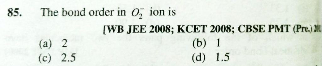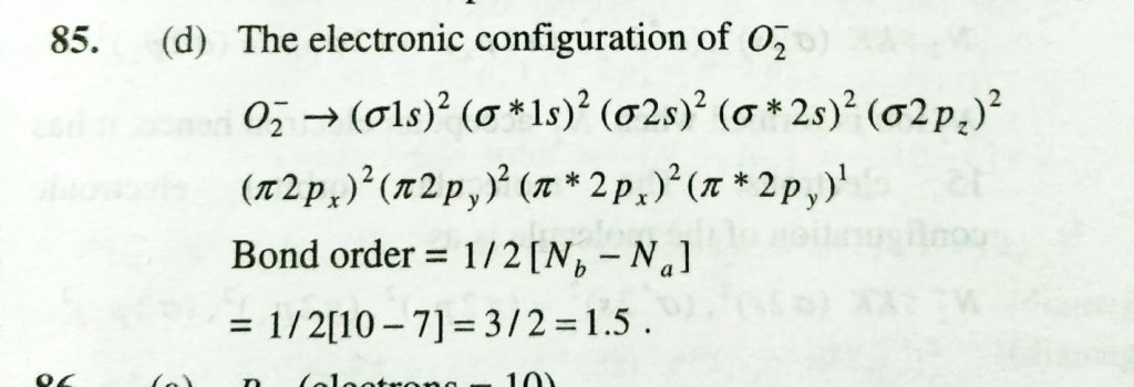 The bond order in O2^- ion is (a) 2 (b) 1 (c) 2.5 (d) 1.5 The bond order in O2^- ion is (a) 2 (b) 1 (c) 2.5 (d) 1.5 December 8, 2020 Category: Uncategorised (JEE Advanced Physics by BM Sharma + GMP Solutions) , Facebook Messenger WhatsApp Share this:TwitterFacebook Related
