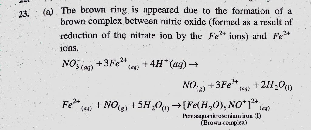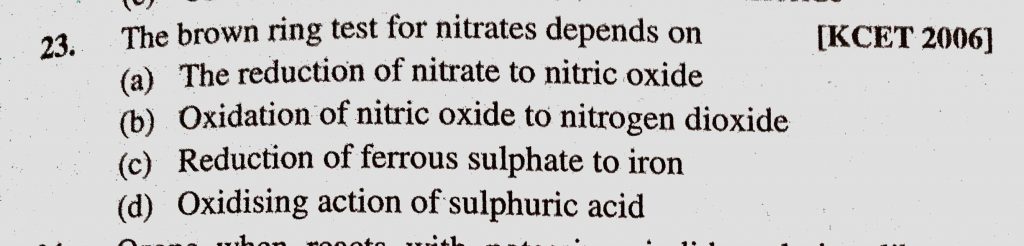 The brown ring test for nitrates depends on (a) The reduction of nitrate to nitric oxide (b) Oxidation of nitric oxide to nitrogen dioxide The brown ring test for nitrates depends on (a) The reduction of nitrate to nitric oxide (b) Oxidation of nitric oxide to nitrogen dioxide December 6, 2020 Category: Uncategorised (JEE Advanced Physics by BM Sharma + GMP Solutions) , Facebook Messenger WhatsApp Share this:TwitterFacebook Related