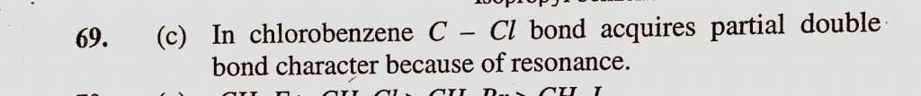 The C – Cl bond in chlorobenzene as compared with C – Cl bond in methyl chloride is (a) Longer and weaker (b) Shorter and weaker (c) Shorter and stronger The C - Cl bond in chlorobenzene as compared with C - Cl bond in methyl chloride is (a) Longer and weaker (b) Shorter and weaker (c) Shorter and stronger February 8, 2021 Category: Uncategorised (JEE Advanced Physics by BM Sharma + GMP Solutions) , Facebook Messenger WhatsApp Share this:TwitterFacebook Related