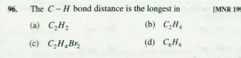 The C-H bond distance is the longest in (a) C2H2 (b) C2H4 (c) C2H4Br2 (d) C6H6 The C-H bond distance is the longest in (a) C2H2 (b) C2H4 (c) C2H4Br2 (d) C6H6 December 6, 2020 Category: Uncategorised (JEE Advanced Physics by BM Sharma + GMP Solutions) , Facebook Messenger WhatsApp Share this:TwitterFacebook Related