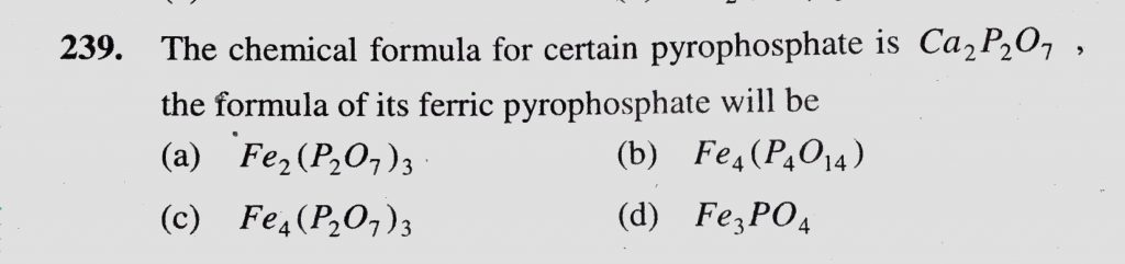 The chemical formula for certain pyrophosphate is Ca2P2O7, the formula of its ferric pyrophosphate will be The chemical formula for certain pyrophosphate is Ca2P2O7 the formula of its ferric pyrophosphate will be December 2, 2020 Category: Uncategorised (JEE Advanced Physics by BM Sharma + GMP Solutions) , Facebook Messenger WhatsApp Share this:TwitterFacebook Related