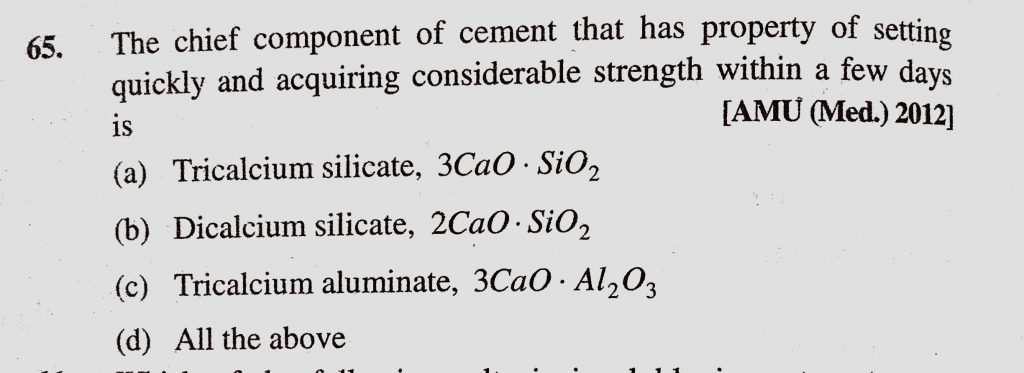 The chief component of cement that has property of setting quickly and acquiring considerable strength within a few days is The chief component of cement that has property of setting quickly and acquiring considerable strength within a few days is November 15, 2020 Category: Uncategorised (JEE Advanced Physics by BM Sharma + GMP Solutions) , Facebook Messenger WhatsApp Share this:TwitterFacebook Related