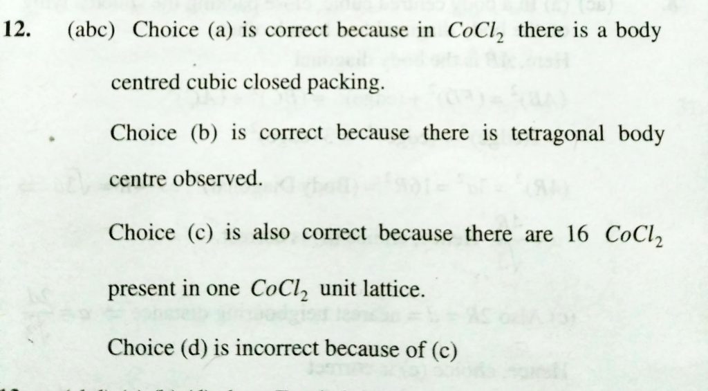 The CoCl2 lattice is (a) Body centred cubic closed pack (b) Body centred tetragonal (c) There are 16 formula units per unit cell. (d) The number of molecules which the basis consist is 2 The CoCl2 lattice is (a) Body centred cubic closed pack (b) Body centred tetragonal (c) There are 16 formula units per unit cell. (d) The number of molecules which the basis consist is 2 February 10, 2021 Category: Uncategorised (JEE Advanced Physics by BM Sharma + GMP Solutions) , Facebook Messenger WhatsApp Share this:TwitterFacebook Related