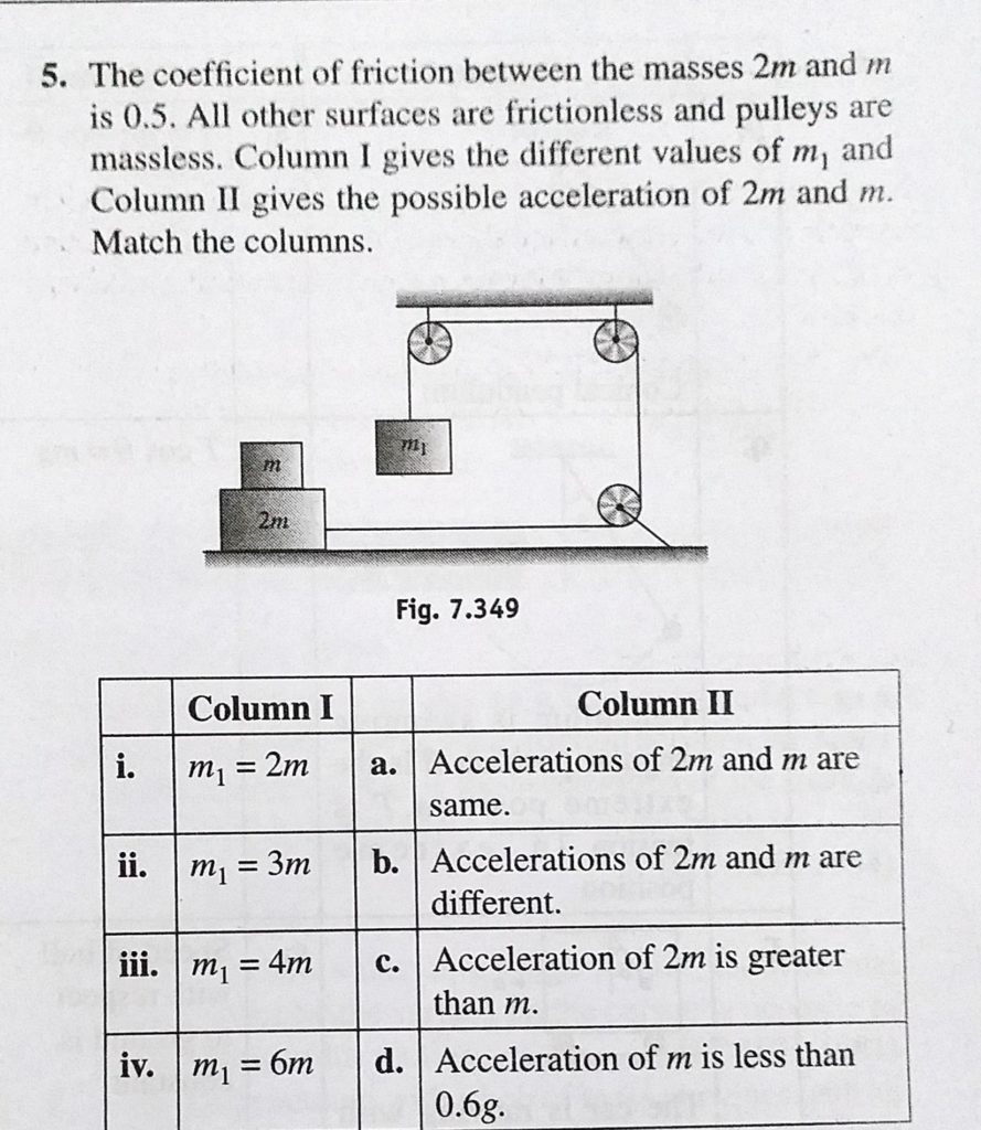 The coefficient of friction between the masses 2m and m is 0.5. All other surfaces are frictionless and pulleys are massless. Column 1 gives the different values of m1 and Column 2 gives The coefficient of friction between the masses 2m and m is 0.5. All other surfaces are frictionless and pulleys are massless. Column 1 gives the different values of m1 and Column 2 gives October 2, 2020 Category: Uncategorised (JEE Advanced Physics by BM Sharma + GMP Solutions) , Facebook Messenger WhatsApp Share this:TwitterFacebook Related