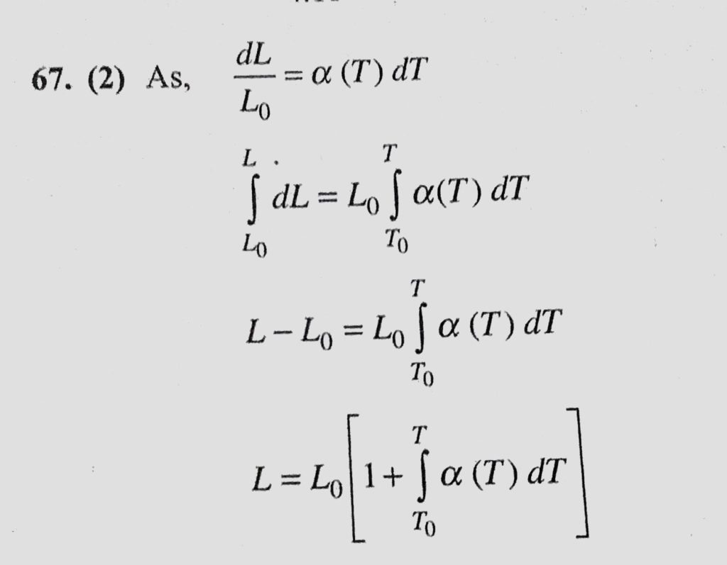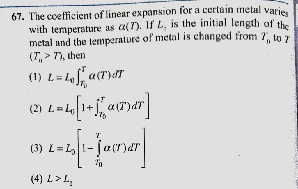 The coefficient of linear expansion for a certain metal varies with temperature as alpha (T). If L0 is the initial length of the metal and the temperature of metal is changed from T0 to The coefficient of linear expansion for a certain metal varies with temperature as alpha (T). If L0 is the initial length of the metal and the temperature of metal is changed from T0 to October 24, 2020 Category: Uncategorised (JEE Advanced Physics by BM Sharma + GMP Solutions) , Facebook Messenger WhatsApp Share this:TwitterFacebook Related