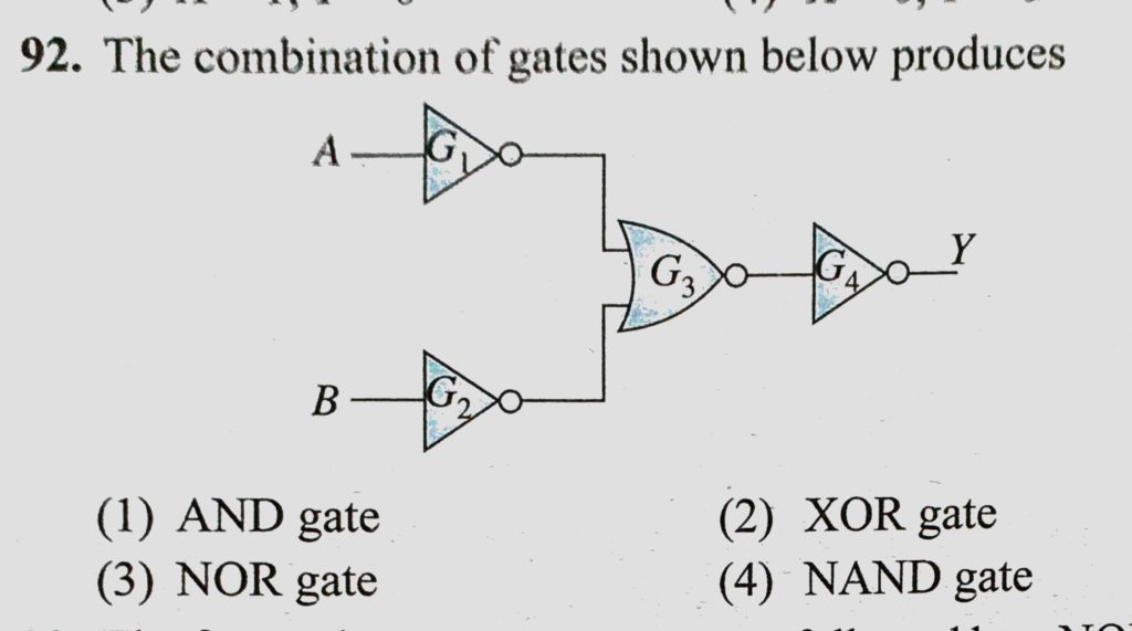 The combination of gates shown below produces (1) AND gate (2) XOR gate The combination of gates shown below produces (1) AND gate (2) XOR gate October 22, 2020 Category: Uncategorised (JEE Advanced Physics by BM Sharma + GMP Solutions) , Facebook Messenger WhatsApp Share this:TwitterFacebook Related