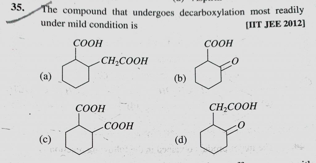The compound that undergoes decarboxylation most readily under mild condition is The compound that undergoes decarboxylation most readily under mild condition is February 13, 2021 Category: Uncategorised (JEE Advanced Physics by BM Sharma + GMP Solutions) , Facebook Messenger WhatsApp Share this:TwitterFacebook Related