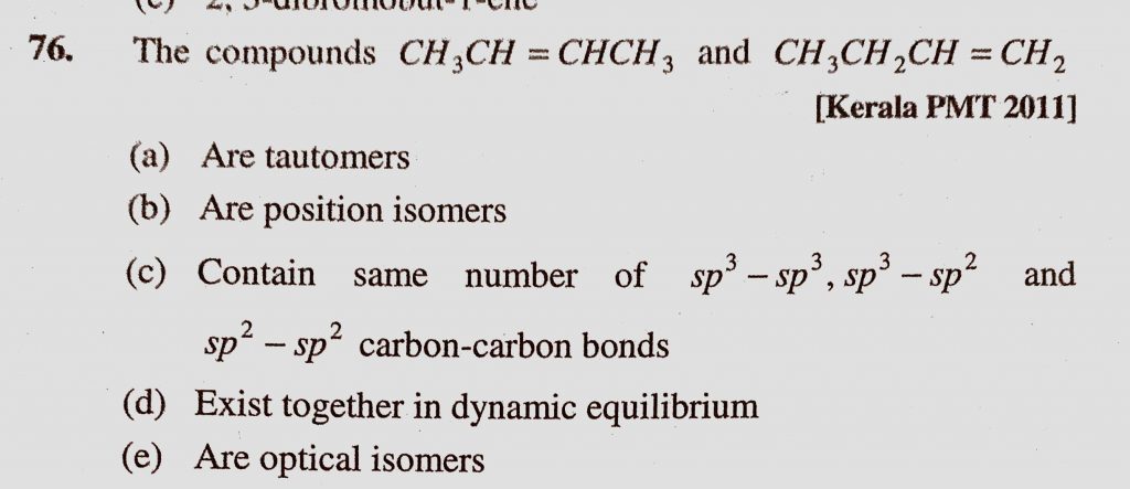 The compounds CH3CH = CHCH3 and CH3CH2CH = CH2 (a) Are tautomers (b) Are position isomers The compounds CH3CH = CHCH3 and CH3CH2CH = CH2 (a) Are tautomers (b) Are position isomers December 10, 2020 Category: Uncategorised (JEE Advanced Physics by BM Sharma + GMP Solutions) , Facebook Messenger WhatsApp Share this:TwitterFacebook Related