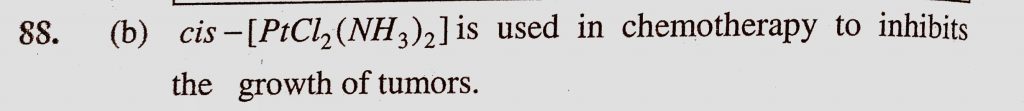 The compounds that inhibits the growth of tumors is (a) cis – (Pd(Cl)2(NH3)2) (b) Cis-(Pt(Cl)2(NH3)2) The compounds that inhibits the growth of tumors is (a) cis - (Pd(Cl)2(NH3)2) (b) Cis-(Pt(Cl)2(NH3)2) December 5, 2020 Category: Uncategorised (JEE Advanced Physics by BM Sharma + GMP Solutions) , Facebook Messenger WhatsApp Share this:TwitterFacebook Related