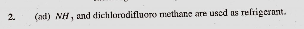 The compounds used as refrigerant are (a) NH3 (b) CCl4 (c) CF4 (d) CF2Cl2 (e) CH2F2 The compounds used as refrigerant are (a) NH3 (b) CCl4 (c) CF4 (d) CF2Cl2 (e) CH2F2 February 9, 2021 Category: Uncategorised (JEE Advanced Physics by BM Sharma + GMP Solutions) , Facebook Messenger WhatsApp Share this:TwitterFacebook Related