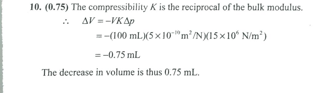 The compressibility of water 5 × 10 ^10 m ^ 2 N^-1 . The decrease in volume of 100 ml of water when subjected to a pressure of 15 MPa: The compressibility of water 5 × 10 ^10 m ^ 2 N^-1 . The decrease in volume of 100 ml of water when subjected to a pressure of 15 MPa: October 10, 2020 Category: Uncategorised (JEE Advanced Physics by BM Sharma + GMP Solutions) , Facebook Messenger WhatsApp Share this:TwitterFacebook Related