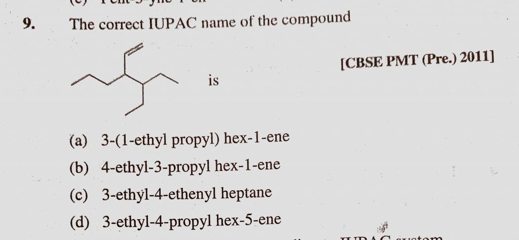 The correct IUPAC name of the compound (a) 3-(1-ethyl propyl) hex-1-ene (b) 4-ethyl-3-propyl hex-1-ene The correct IUPAC name of the compound (a) 3-(1-ethyl propyl) hex-1-ene (b) 4-ethyl-3-propyl hex-1-ene December 10, 2020 Category: Uncategorised (JEE Advanced Physics by BM Sharma + GMP Solutions) , Facebook Messenger WhatsApp Share this:TwitterFacebook Related